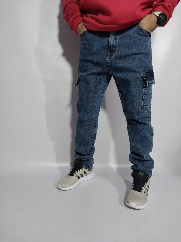 Pantalón de jean cargo elastizado.